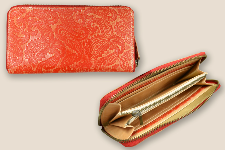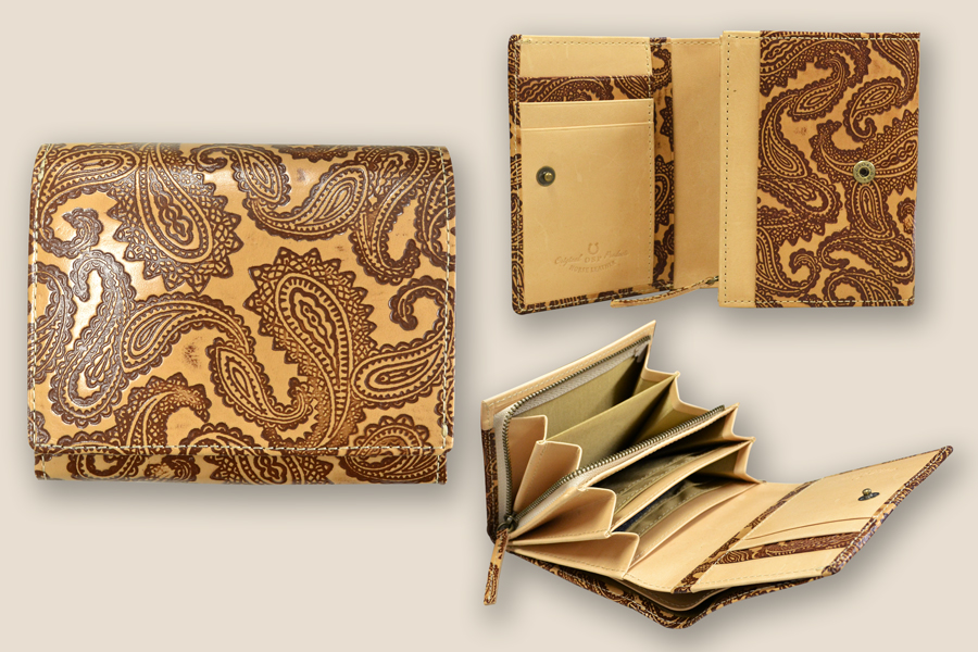ペイズリーホースレザーシリーズは、姫路のタンナーと協力して開発した馬革のみを使用し、熟練した職人が一点一点丁寧に手作りした商品です。 馬革は牛革に比べて軽く、滑らかで柔らかいといった特性があります。革本来の魅力を残しながら、職人による手間のかかる手染め*をすることによって、高級感を保ちつつファッション性を高めた製品へと作り変えることが出来ました。 使いこむうちに馴染み、味わいを深める馬革製品の魅力をお楽しみください。 *) 商品の染色には手作りならではの個体差があります。